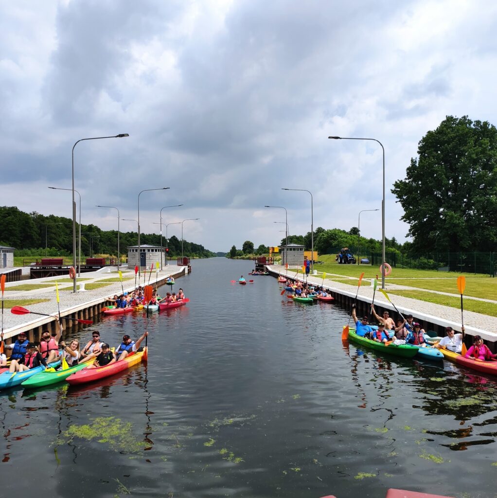 Gliwice, tutaj kajaki wita śluza Łabędy, największy port śródlądowy, ulubione miejsce wędkarzy.