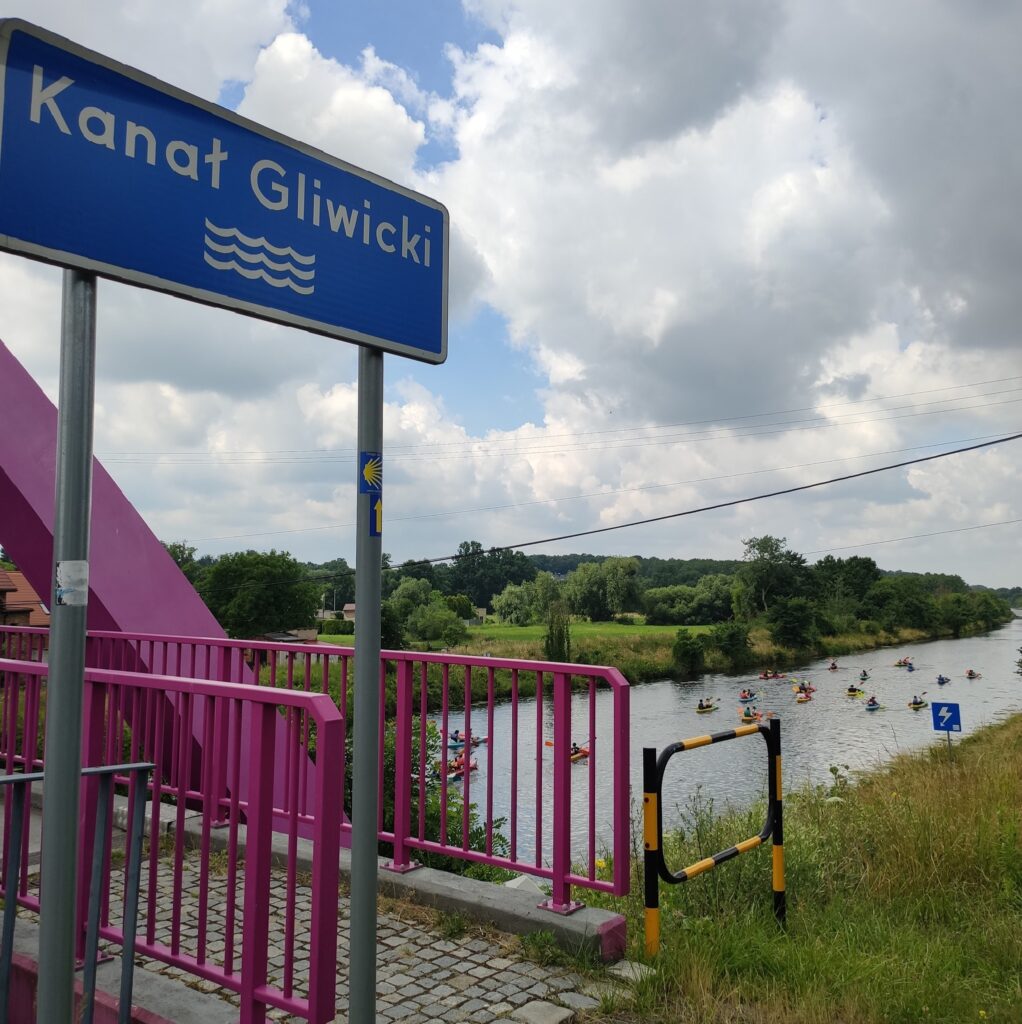 Meta rejsu kajakowego to różowo-fioletowy most nad Kanałem Gliwickim.